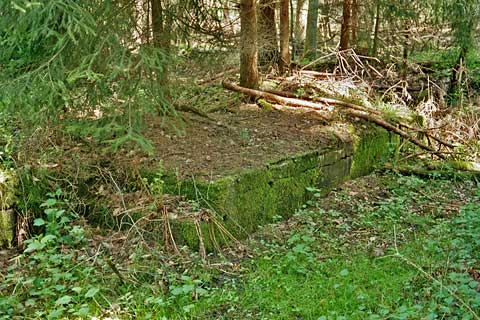 sich in einem Waldstück östlich des Werksgeländes, lediglich durch die