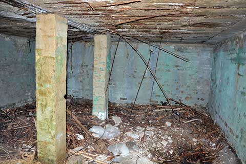 Im Lagerbereich findet man diesen eingedrückten Luftschutzraum.