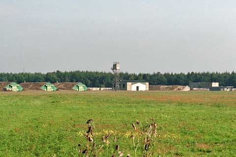 ![]() Links hinter einem Schutzwall das Wartungsgebäude. |