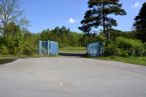 Die ehemalige Einfahrt der Liegenschaft Köhlerberge. Rechts des Weges stand früher das Wohnhaus des Platzwärters.