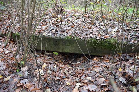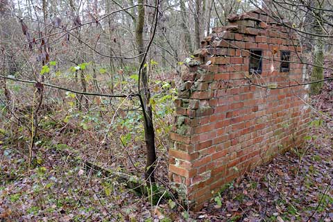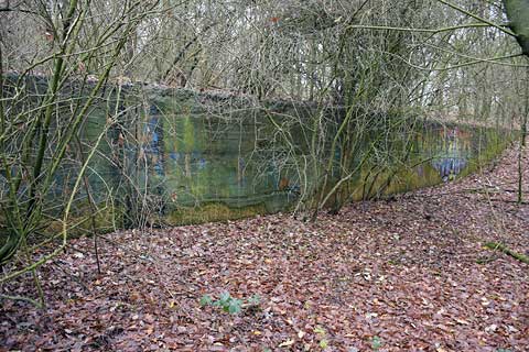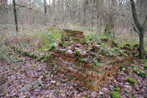 Hier typisches Mauerwerk als Überbleibsel einer Geschoßfangkammer.