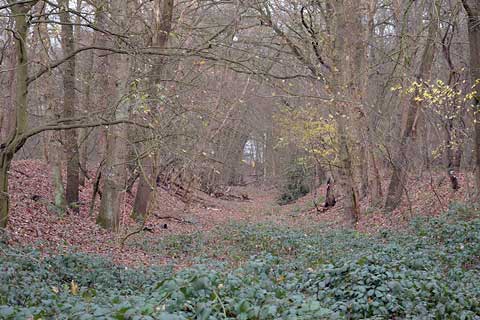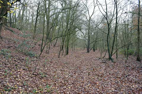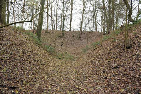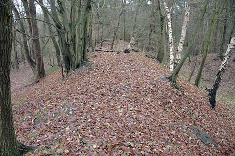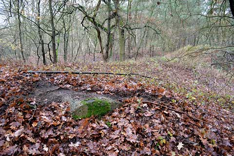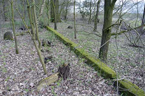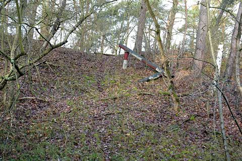 Nur Reste des westlichen Erdwalls blieben von den zwei kurzen MG-Ständen.