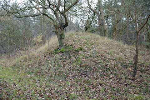 Und am östlichen Weg gibt es einen durchgehenden Wall, mit Buchten für 8 Hütten.