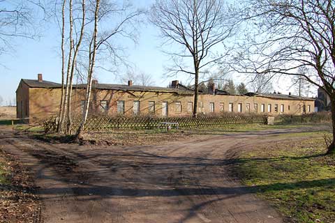 Entlang der Lagerstraße standen mehrere Baracken in teilweise massiver