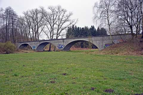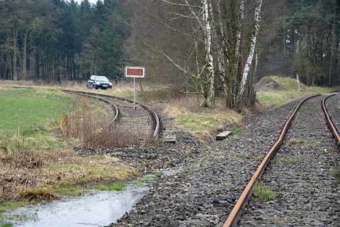 Eine weitere für die Einrichtung und den laufenden Betrieb wichtige Voraussetzung ist die Nähe einer Eisenbahnstrecke gewesen. Seinerzeit liefen fast alle Transporte von Massengütern auf der Schiene. Dementsprechend mußte ein Anschlußgleis bis in die Anstalt führen. Interessanterweise ist die Verbindung nicht von der östlich angrenzenden staatlichen Reichsbahnstrecke hergestellt worden. Knapp 1 km westlich verlief ein Gleis der privaten Verden-Walsroder Eisenbahn. Das Anschlußgleis zur Muna hat man dort bei Benzen auf freier Strecke angebunden. Möglich ist, daß diese Option für Eisenbahnen aus betrieblicher Sicht einfacher genutzt werden konnte, als die Anbindung an eine deutlich höher frequentierte Hauptbahn. Hier war aber ein größerer Aufwand zu betreiben. Rund 1 km Schienenstrang wurde bis zum Eisenbahntor gebaut, und eine mit drei Bögen einigermaßen aufwendige Brücke über die Böhme ist erforderlich gewesen.